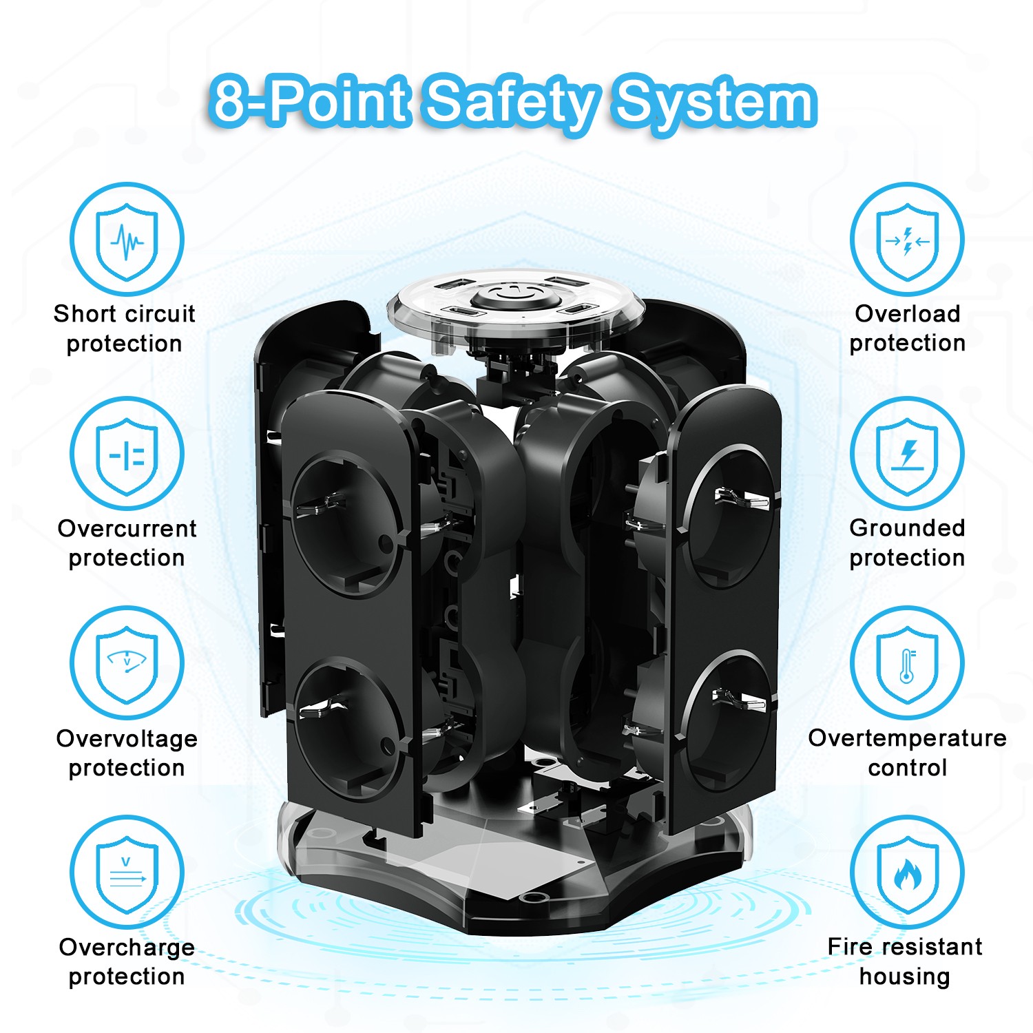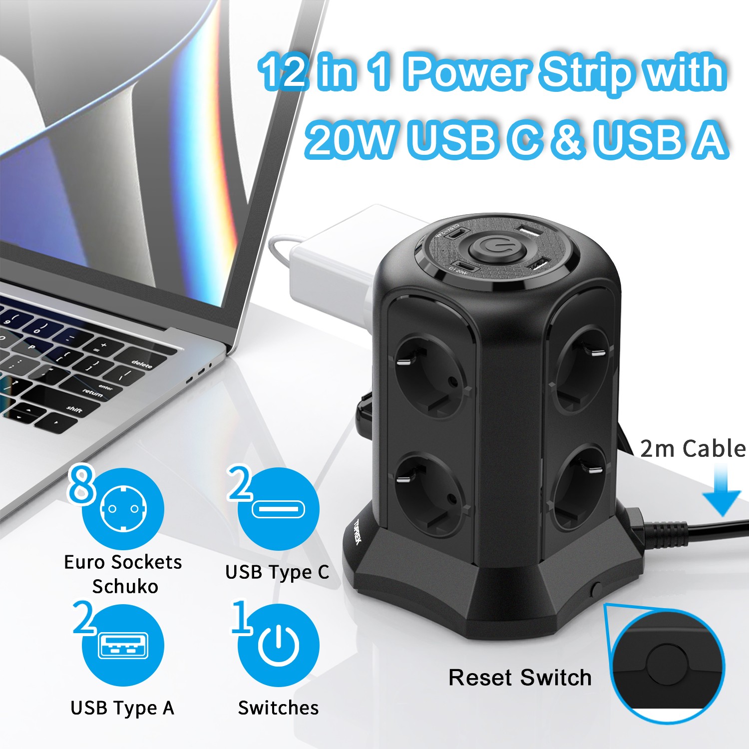 8個(gè)歐規(guī)孔 + 2個(gè)USB-A + 2個(gè)USB-C - USB輸出