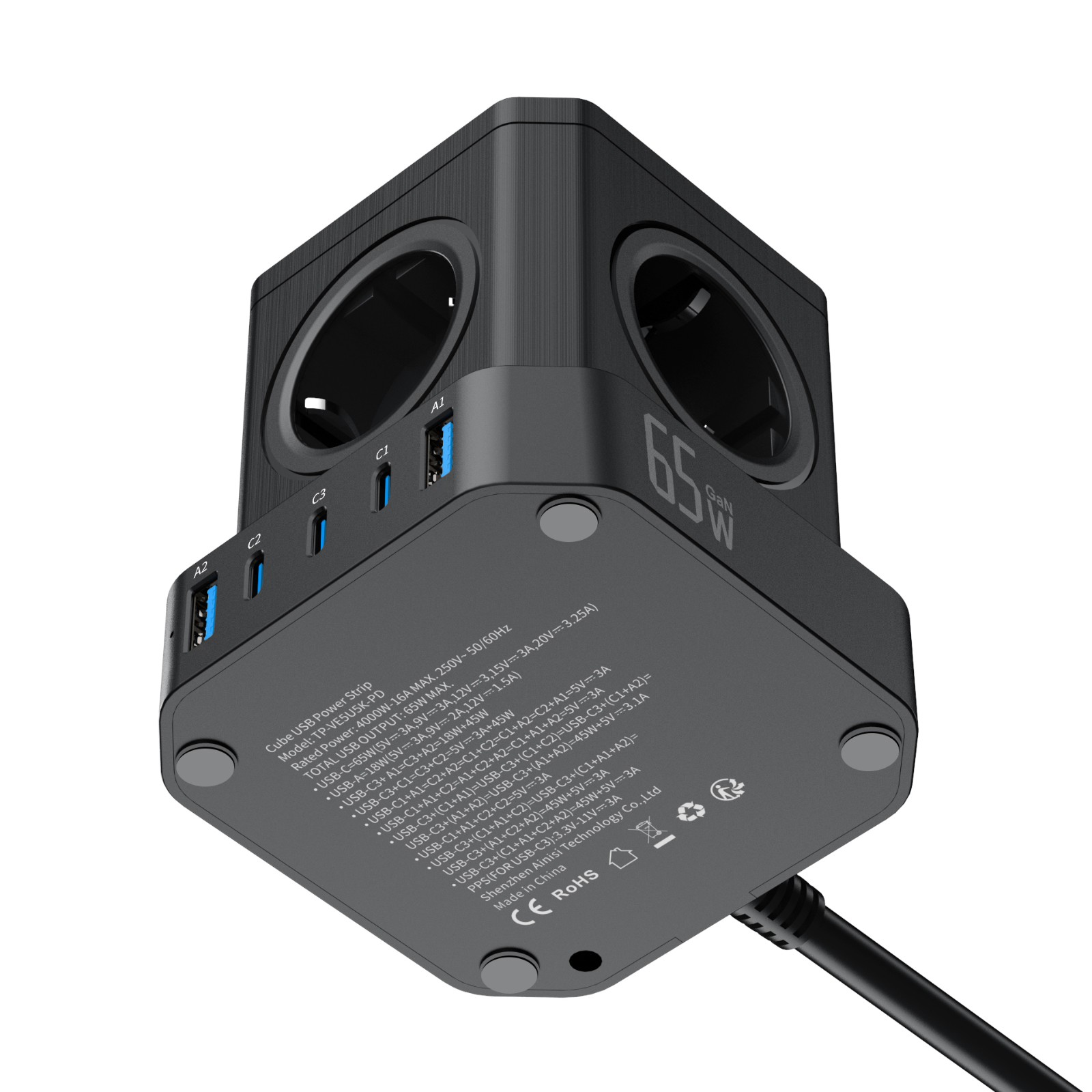 5個(gè)歐規(guī)插孔 + 2個(gè)USB-A + 3個(gè)USB-C - USB輸出