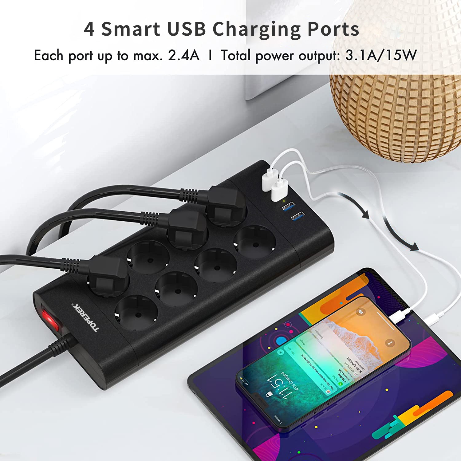 8個歐規(guī)插孔 + 4個USB - USB輸出