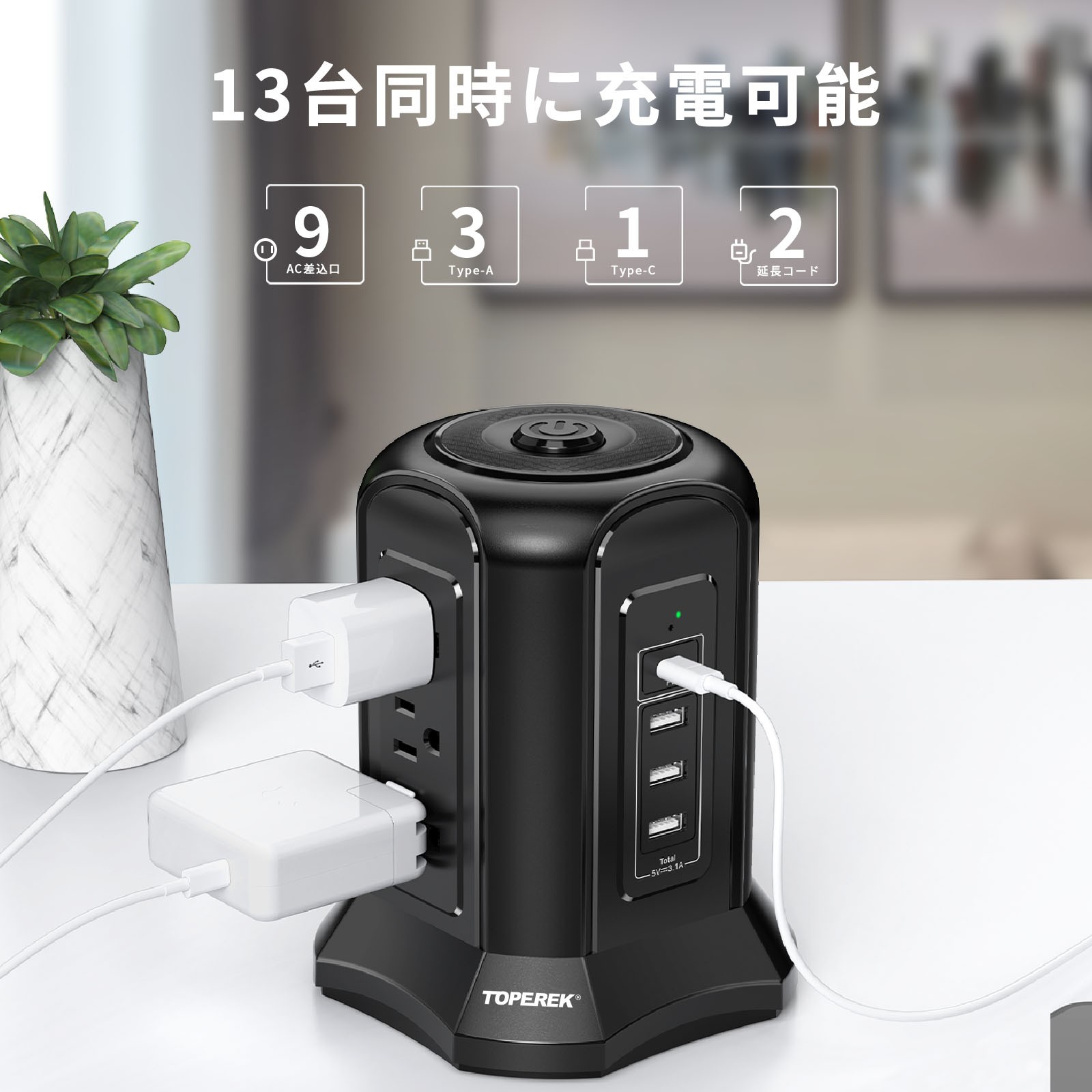 9個日規(guī)插孔 + 3個USB-A + 1個USB-C - USB輸出