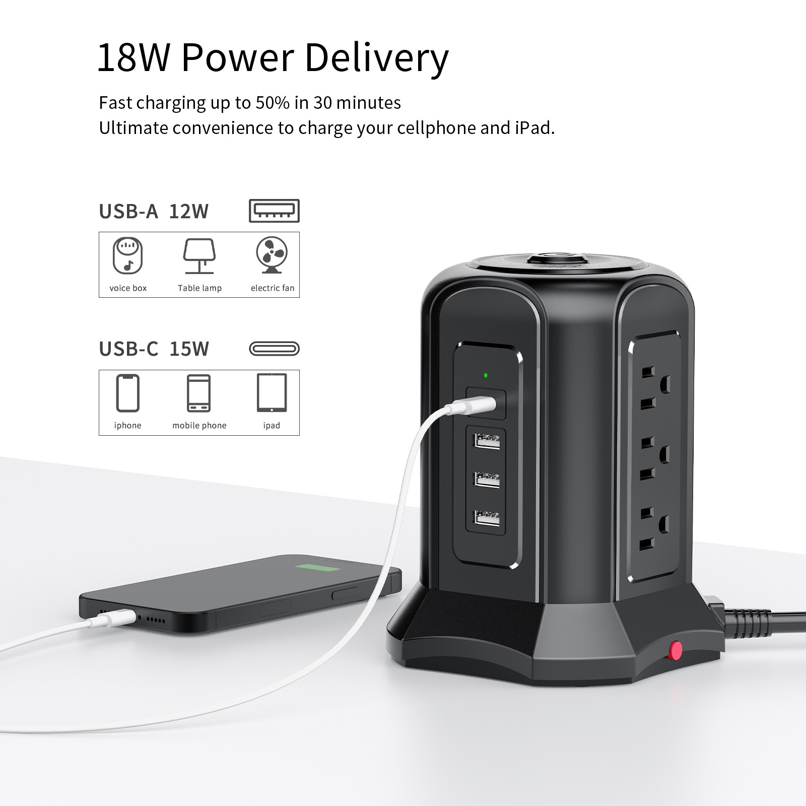 9 USA outlets with 3 USB-A 1 USB-C - USB輸出