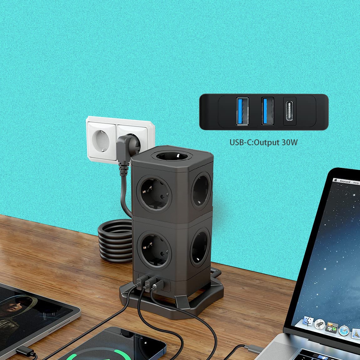 9 EU outlets with 2 USB-A 1 USB-C - USB輸出