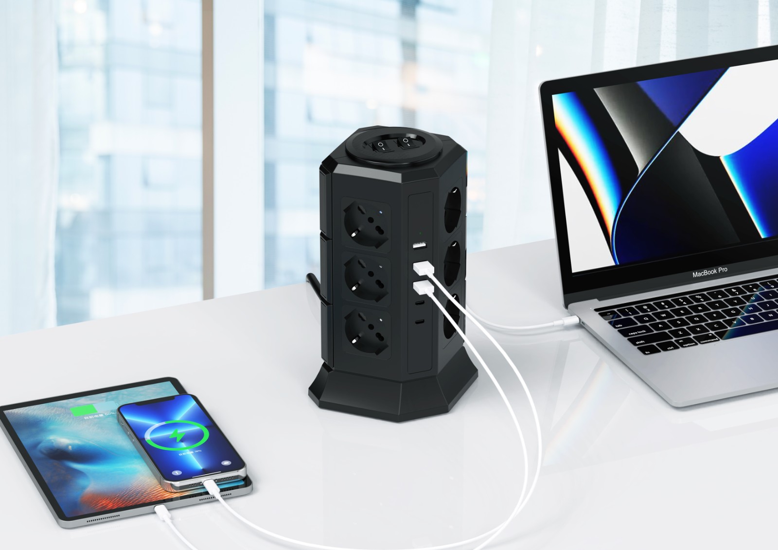 12個意大利規(guī)孔+3個 USB-A+2個 USB-C - USB輸出