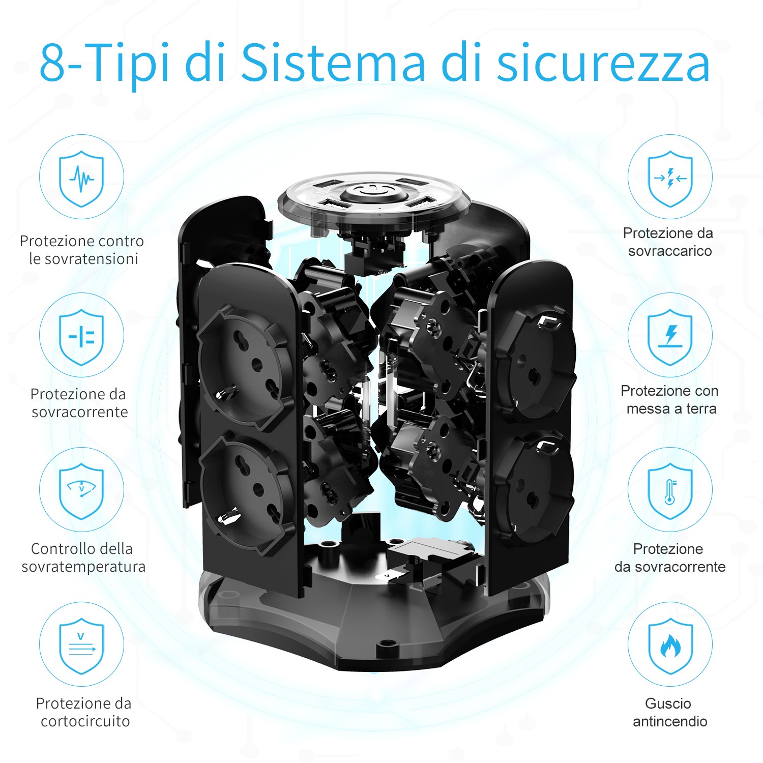 8個意大利規(guī)插孔 + 4個USB - USB輸出